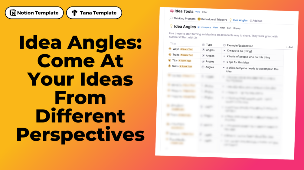 - 🧠 40+ Idea Tools: Thinking Frameworks, Idea Angles & Behavioural Triggers so you can quickly map out your ideas, find interesting angles & build BIG ideas that get the resonance they deserve.