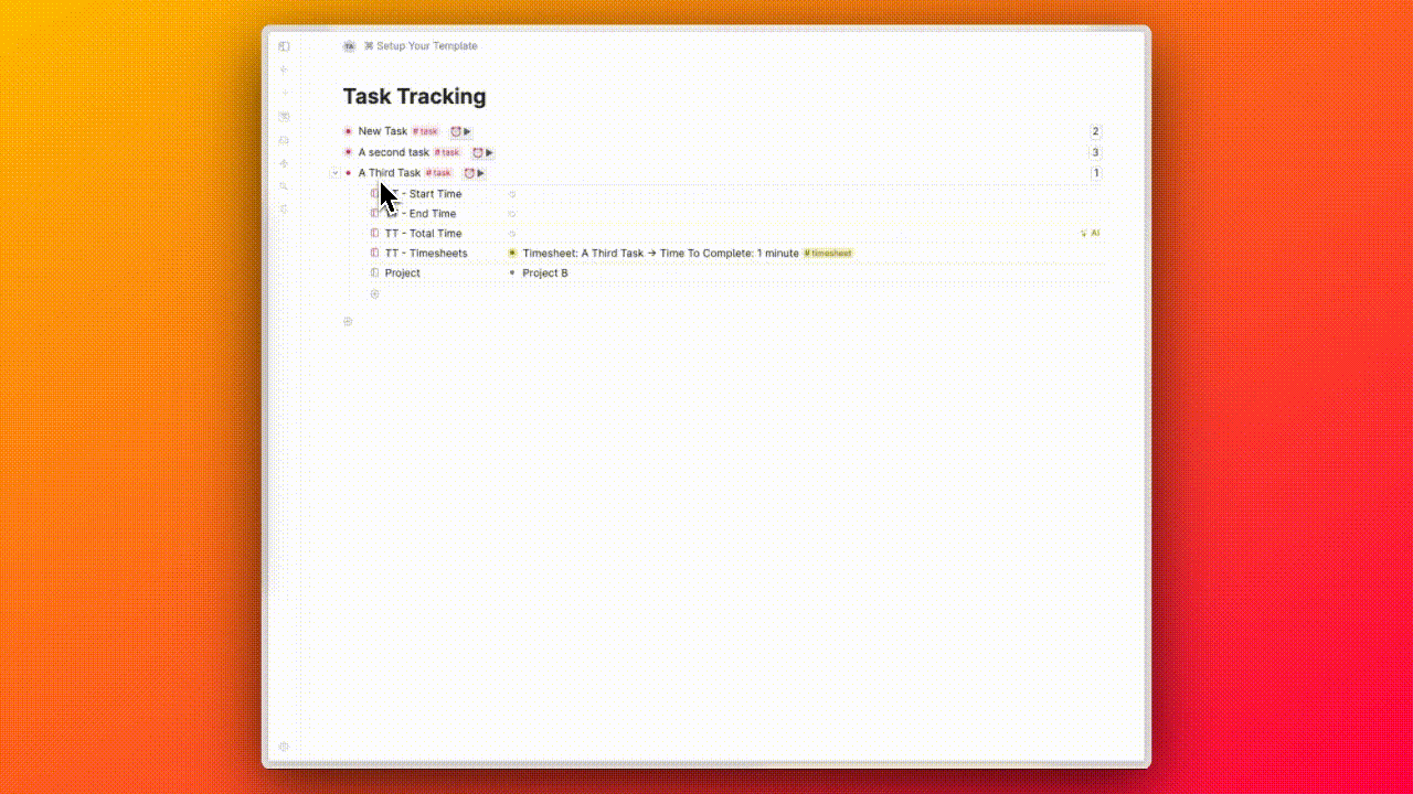 Track the time you spend on tasks, view timesheets & generate timesheet reports using the magic of AI in Tana. Forget about using external time-tracking apps. You keep your tasks in Tana, you should be able to track your time in Tana too!