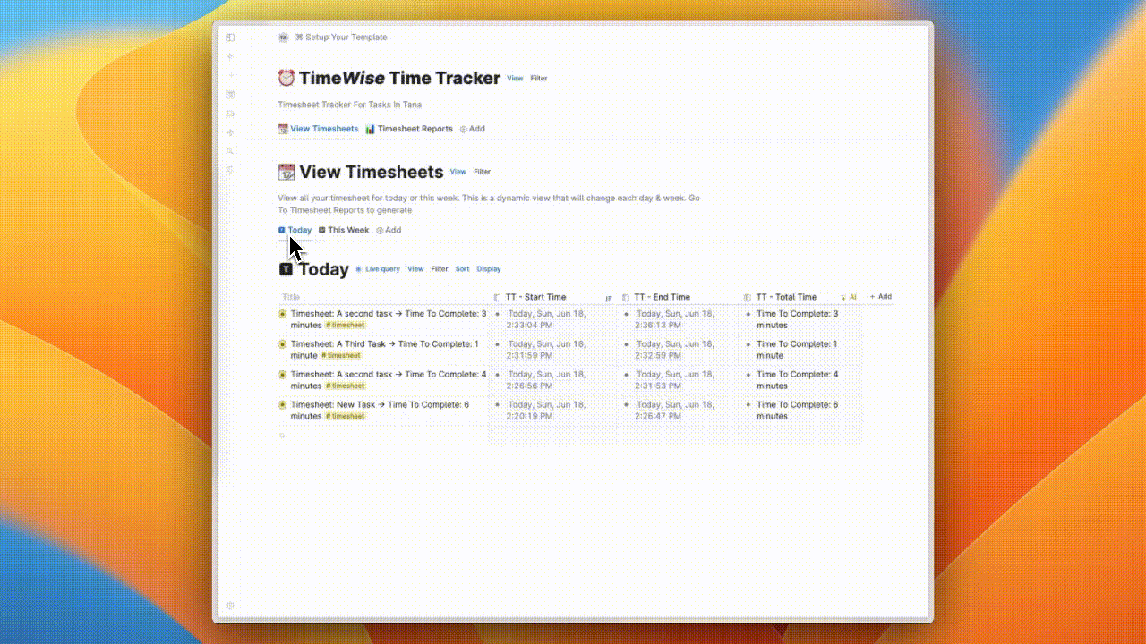TimeWise Time-Tracking Template For Tana