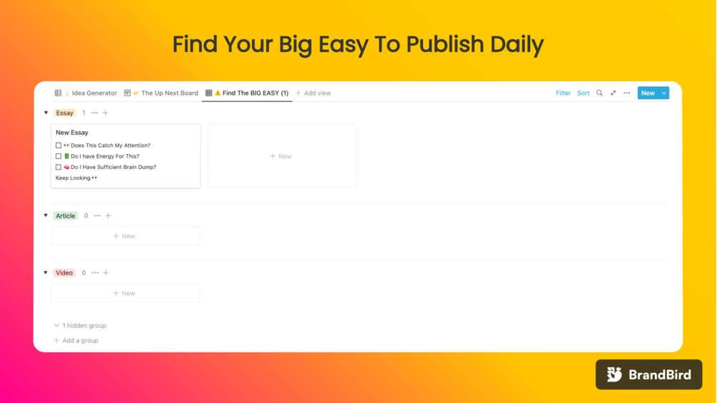 - Use the BIG EASY Framework to find content ideas you can publish on your best (& worst) energy days.