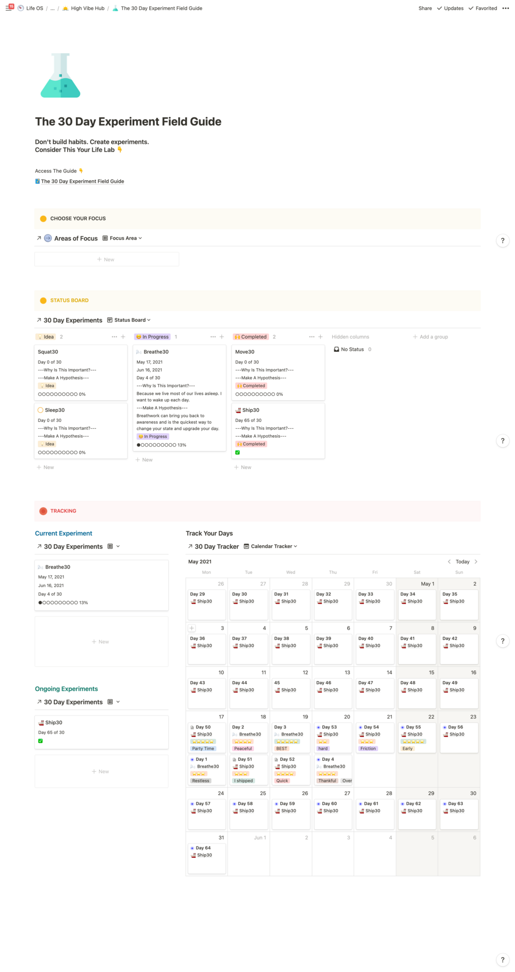 The 30 Day Experiments Field Guide + Notion HQ Tracker